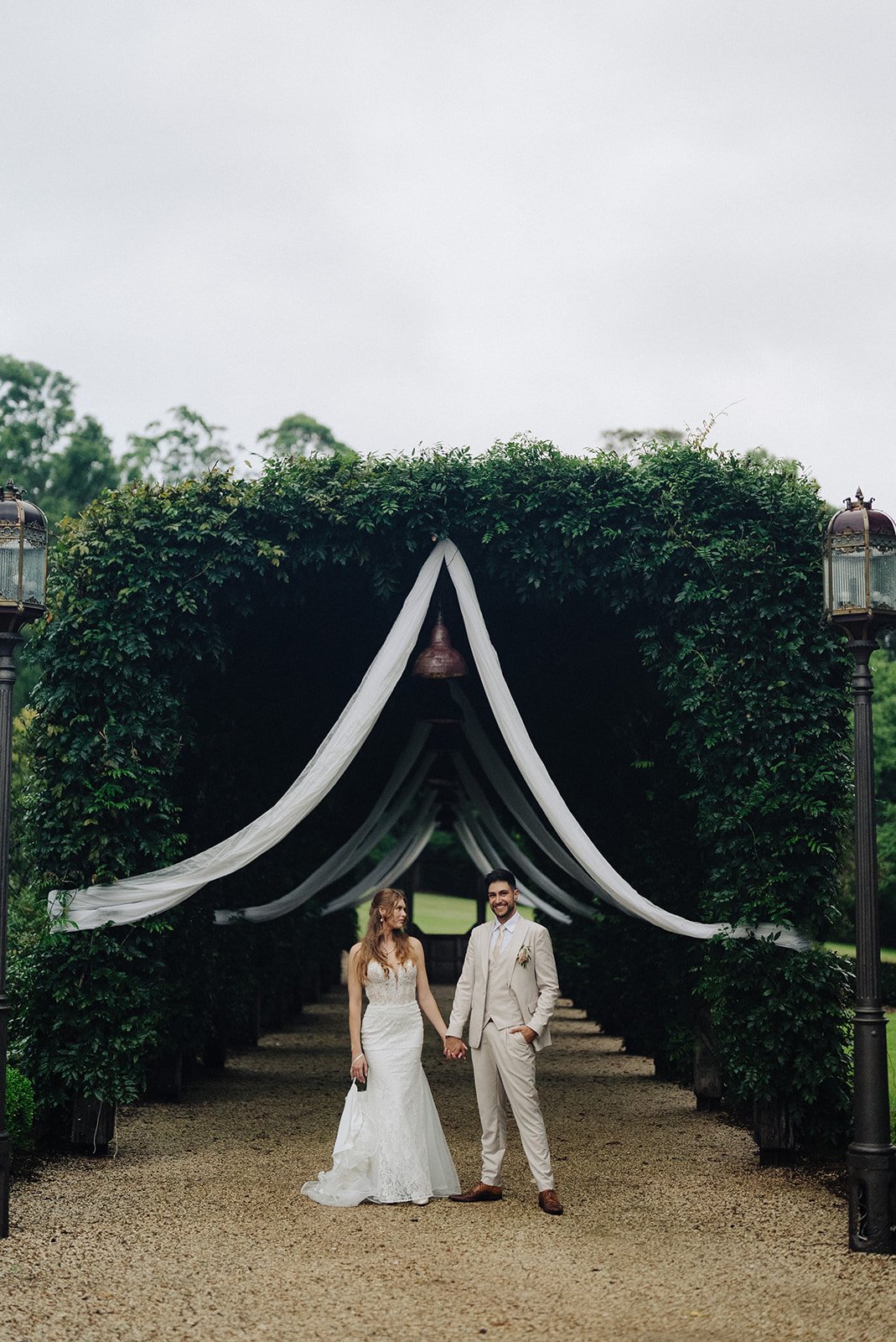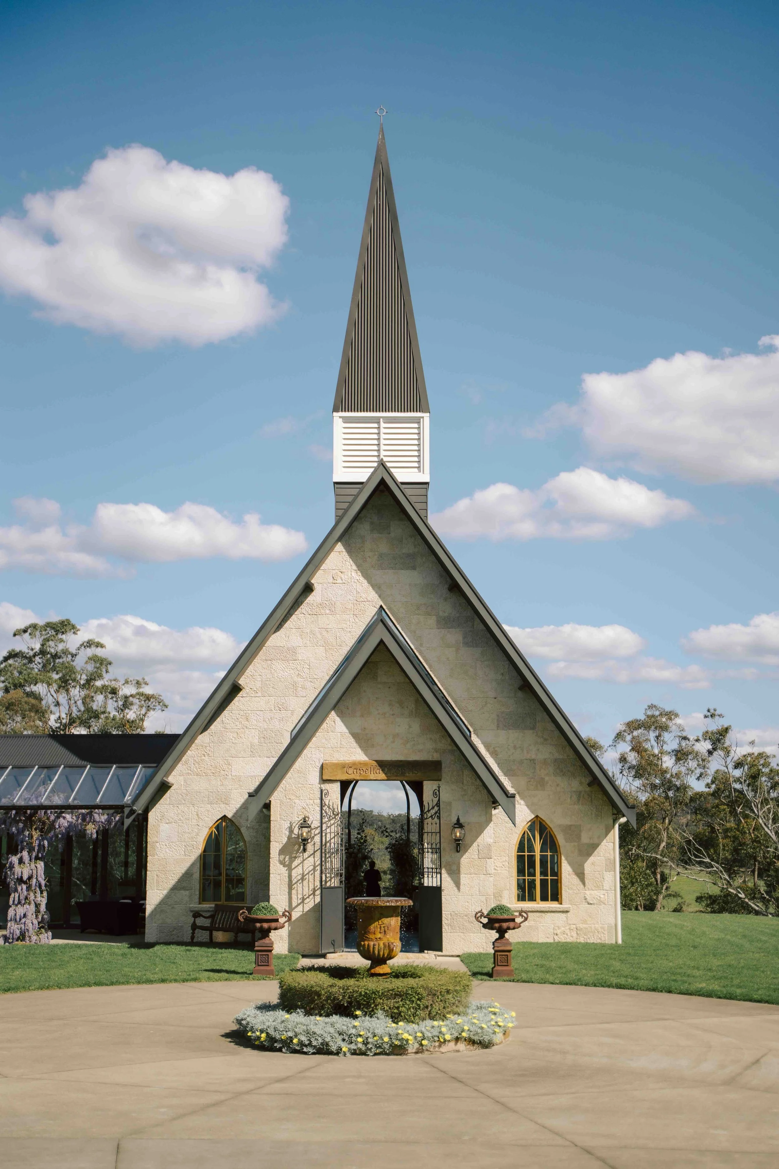 Chapel Ridge is a chic, rural wedding venue set within 200 acres of cattle country, just an hour north of Sydney. This secluded property features a sandstone chapel with a 17-metre glass window, a wisteria terrace, and a purpose-built pavilion that can hold around 120 guests. The grounds are beautifully manicured and include an Alice in Wonderland–style maze, offering magical photo opportunities. The venue is fully air-conditioned, so rain or heat isn’t a worry.